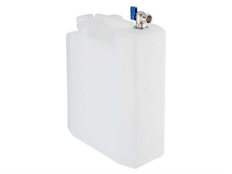 10 literes víztartály 26 mm-es rövid fém menetes szeleppel, fehér színben