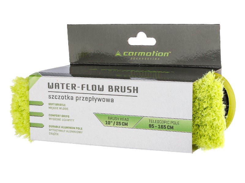 A 25 cm / 10" vízátfolyású kefe 95 - 165 cm-es teleszkópos nyéllel és szeleppel ideális választás mindazok számára, akik megbízható és praktikus eszközt keresnek járművük tisztításához. A termék hosszú élettartama és könnyű használata révén kényelmes megoldást kínál, amely megfelel a legmagasabb elvárásoknak is.