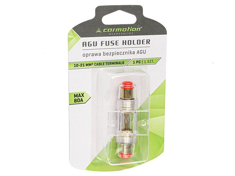 Az AGU üveg biztosítéktartó 80A-ig, 10-21 mm2 vezetékhez való csatlakozókkal kiváló megoldás, amely biztosítja a biztonságot és a kényelmet az autós használat során. Megbízható teljesítménye és tartóssága révén ideális választás mindennapi igényekhez.