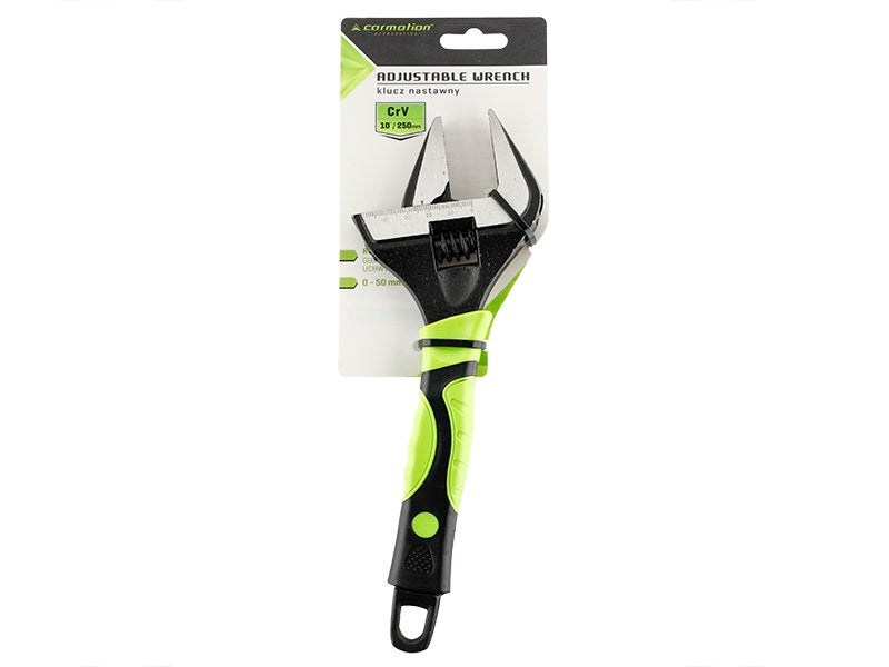 Az Állítható csavarkulcs 0 - 50 mm, 10" / 250 mm kiváló minőségű és megbízható szerszám, amely ideális választás a különböző méretű csavarok és anyák lazításához és meghúzásához. Ergonomikus kialakítása és tartós anyaga garantálja a hosszú távú használatot, miközben a gumi fogantyú kényelmes fogást biztosít.