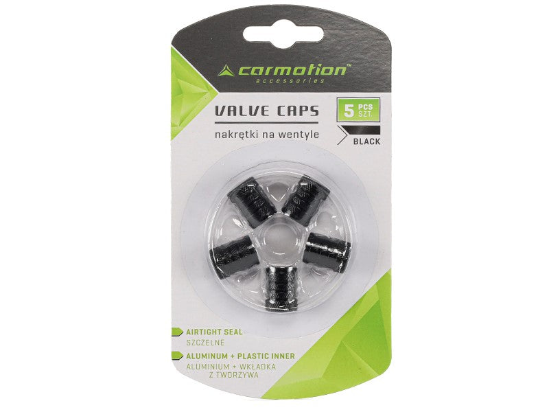 Alumínium szelepsapkák műanyag menetes betéttel, 5 db, fekete színben