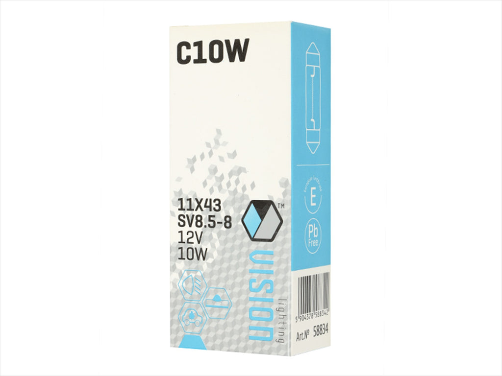 A VISION C10W 11X43 12V 10W SV8.5 izzó kiváló választás, ha megbízható és hatékony világítást keres járművébe. Tervezésének köszönhetően ideális megoldás a ködgátló lámpákhoz, biztosítva a megfelelő láthatóságot és biztonságot a közlekedés során.